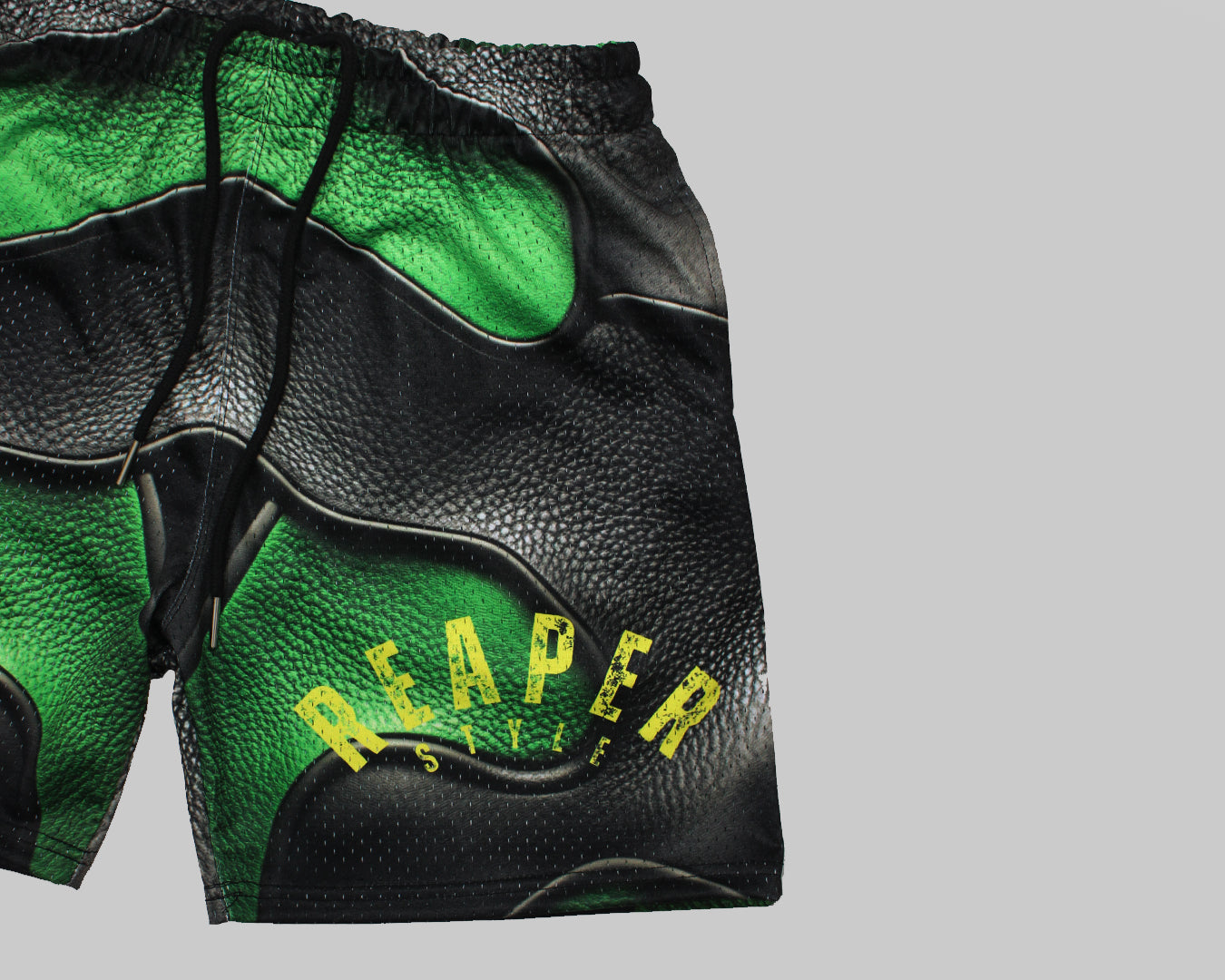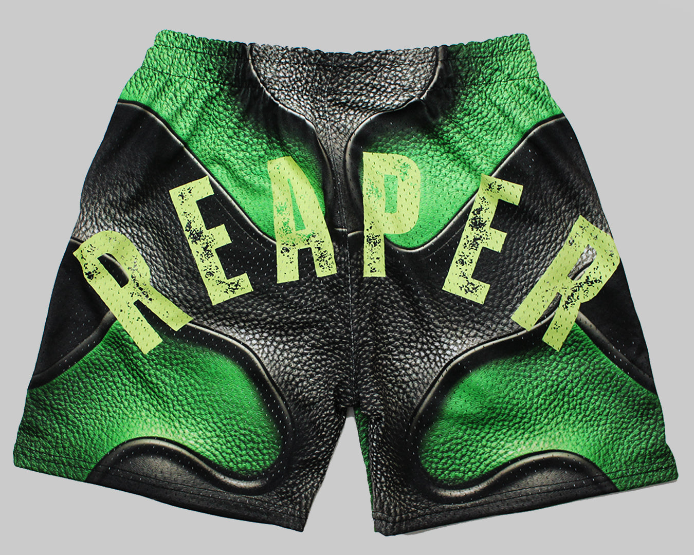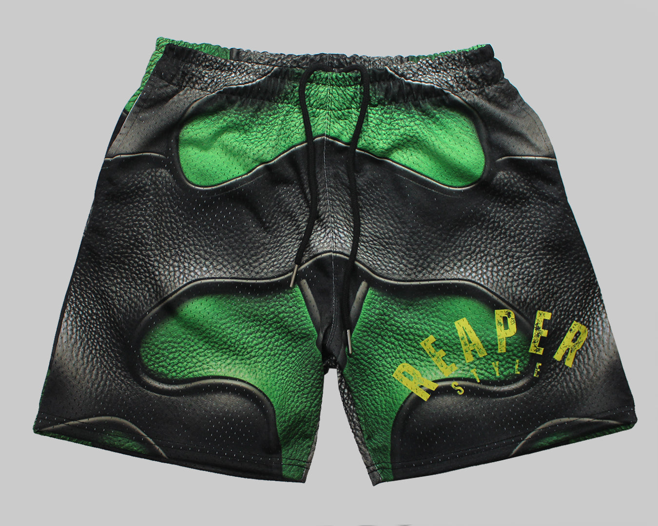 Stand out in the Reaper Style Green & Black Shorts a bold blend of textured design and streetwear edge. Featuring a unique faux leather print look