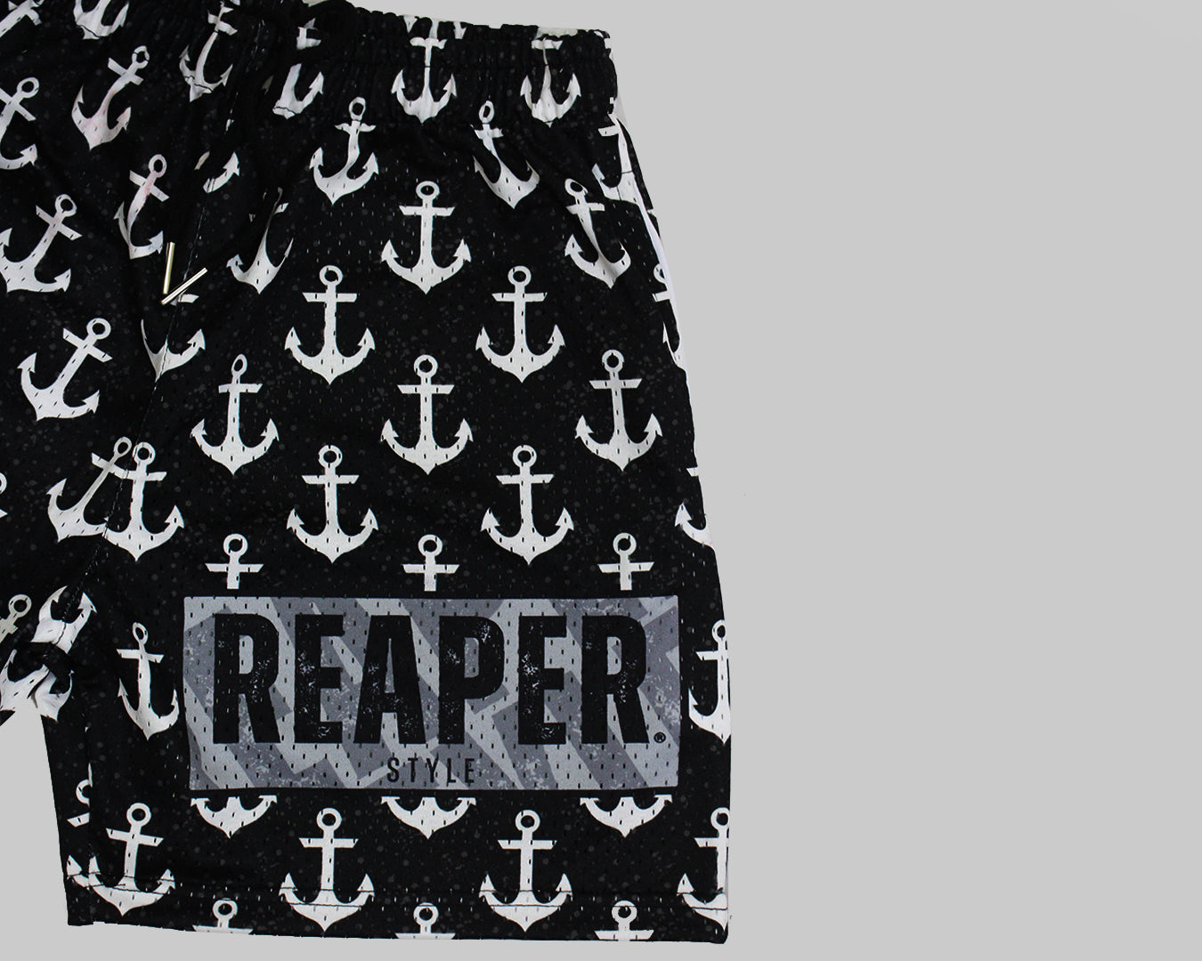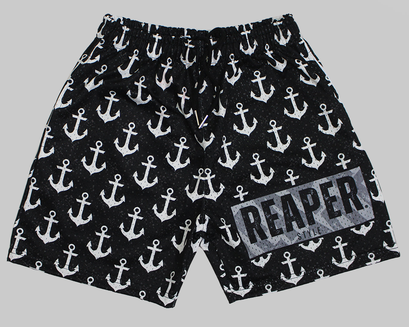 Drop anchor in bold style with our Black Anchor Print Shorts by Reaper Style. Crafted for streetwear lovers, these lightweight mesh shorts feature a secure drawstring waistband and a bold “REAPER STYLE” patch. Perfect for beach vibes, summer streets, or laid-back urban looks.