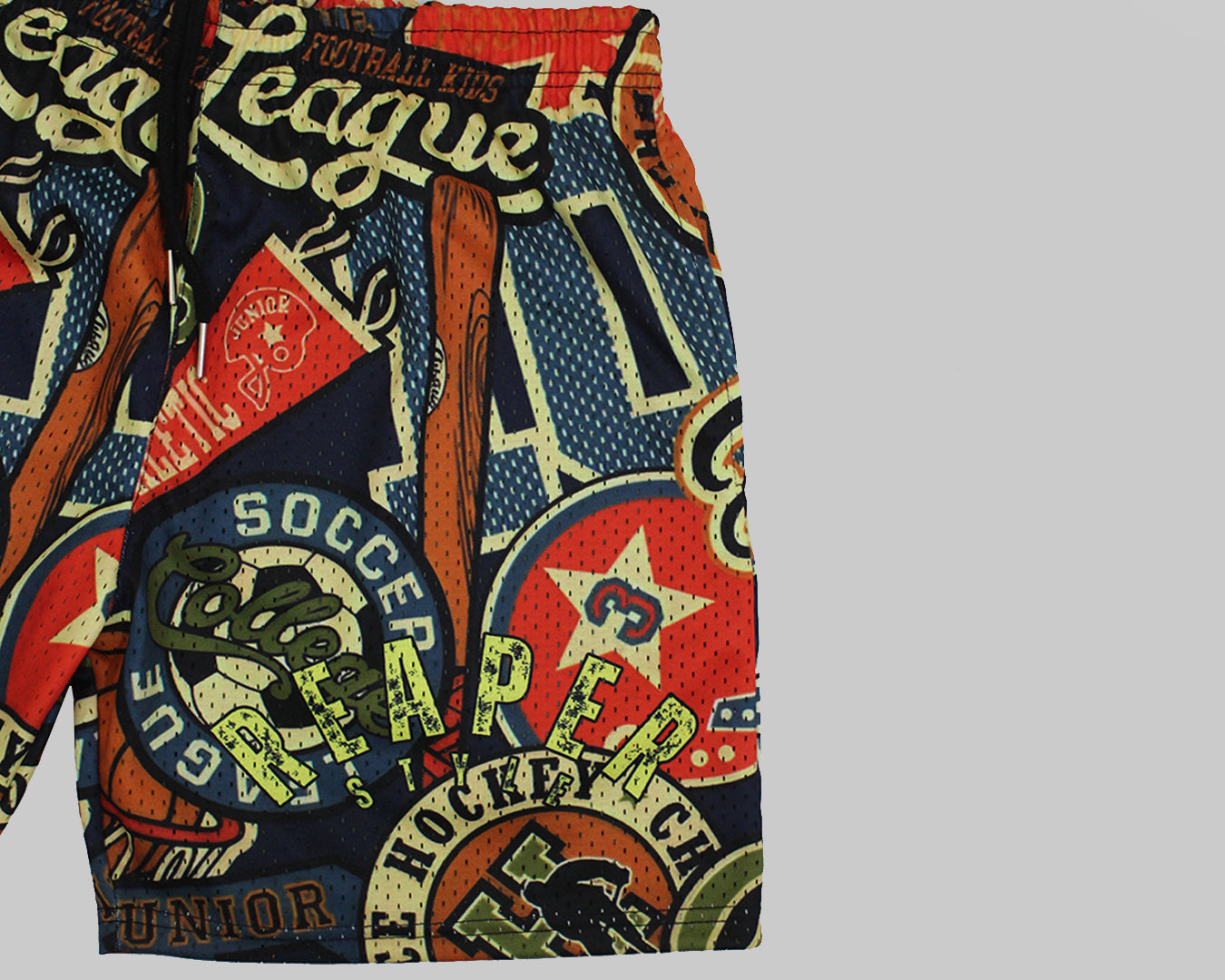 Reaper College League Mesh Shorts – Retro Sports Patchwork Style