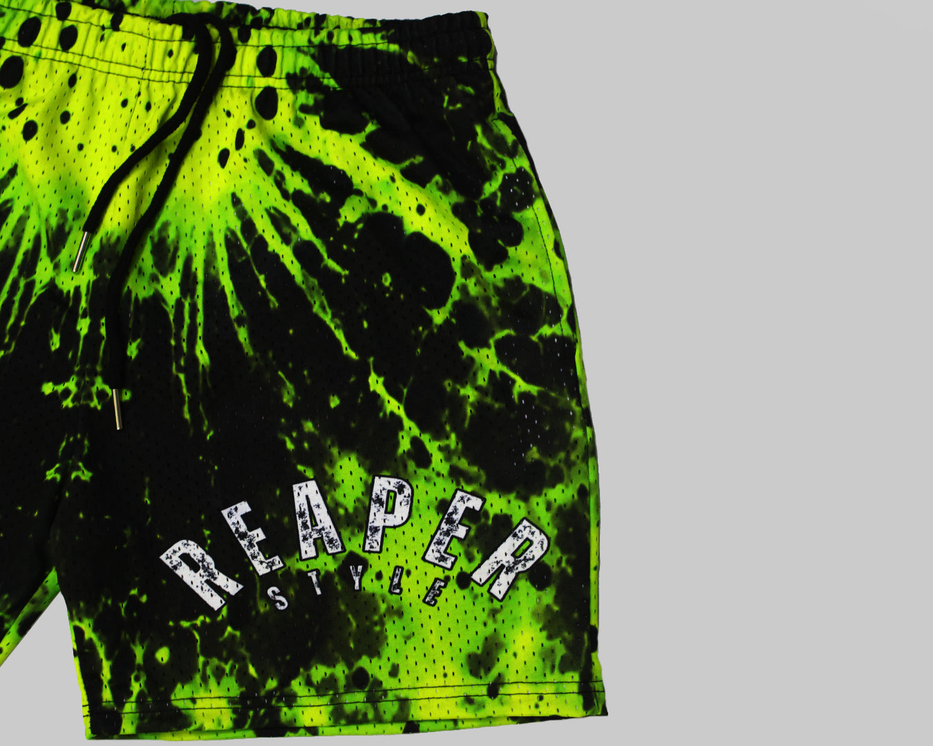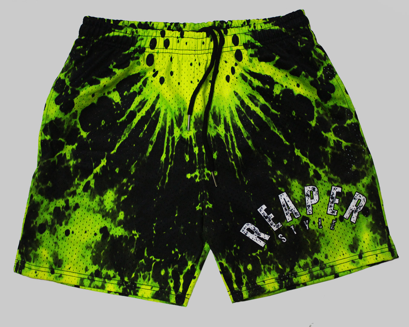 Neon Green Splash Mesh Shorts – Streetwear Drip