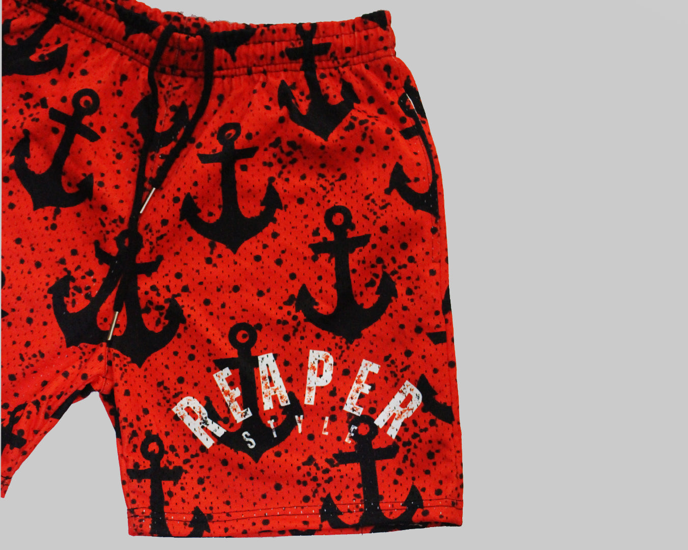 Stand out with REAPER STYLE's bold red mesh shorts featuring a striking black anchor print. Lightweight, breathable, and built for comfort — perfect for streetwear, gym, or casual summer vibes. Shop now and make a statement.