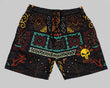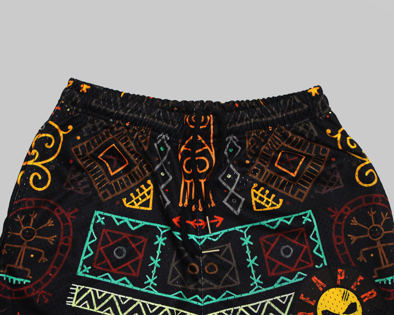 Unleash your wild side with these bold Tribal Print Shorts by Reaper Style. Designed with vivid ethnic patterns in neon orange, green, yellow, and red over a deep black mesh fabric, these shorts bring out raw energy and primal vibes.
