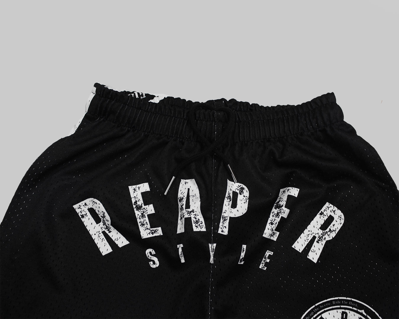 Level up your streetwear game with the Reaper Style Black Mesh Shorts. Crafted from breathable, high-performance mesh, these shorts feature a bold distressed “REAPER STYLE” print across the front and a striking skull badge that brings serious edge to your fit. Built for rebels who move with purpose.