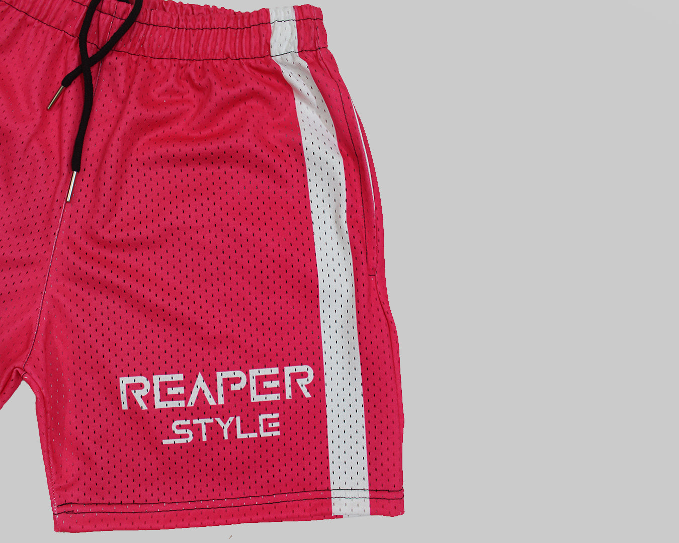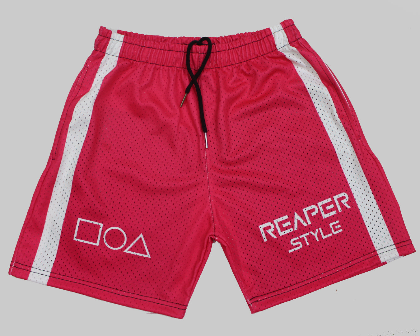 Level up your fit with the Reaper Game Mode Shorts. Inspired by survival games and street grit, these red mesh shorts feature crisp white side stripes, iconic shape symbols, and bold REAPER STYLE branding. Whether you’re on the court or the block—it's game on.