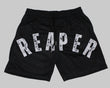 Make a statement without saying a word. The Reaper Dominance shorts are raw, minimal, and built for dominance on the street. Featuring a clean black mesh base with oversized, distressed white "REAPER" typography stretching boldly across both legs, these shorts embody fearless street culture with a stripped-down edge.