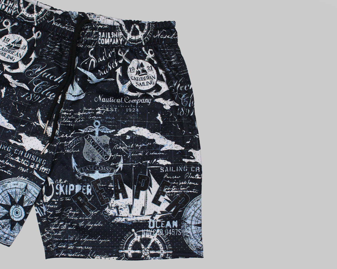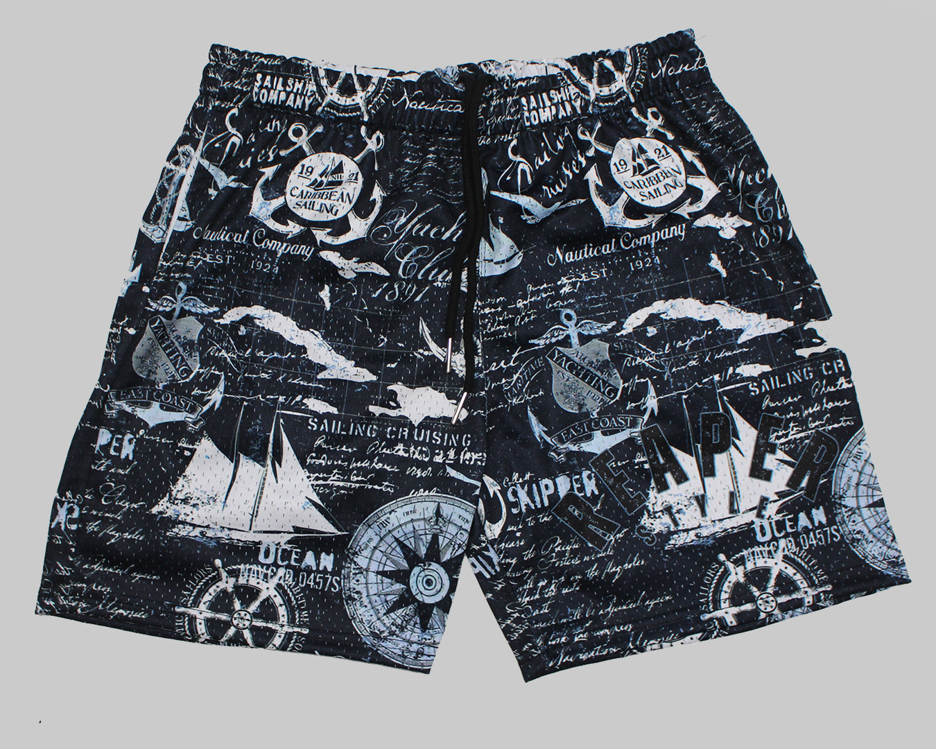 Sail into fresh style with the Reaper Style Nautical Drift Shorts. Featuring vintage maritime graphics, compasses, and sailing motifs, these mesh shorts capture coastal vibes with a dark edge. Lightweight, breathable, and ready for adventure on land or sea.